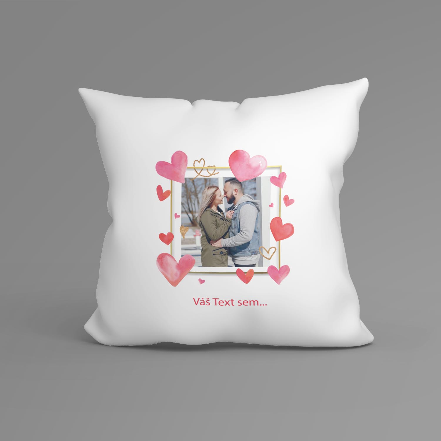 Tento nádherný personalizovaný vankúš s vašou fotkou a vlastným textom je dokonalým darčekom pre vašich milovaných. Ozdobený romantickými srdiečkami a elegantným rámikom vytvorí jedinečnú dekoráciu, ktorá pripomenie tie najkrajšie momenty. Ideálny ako darček na Valentína, výročie alebo len tak – z lásky.